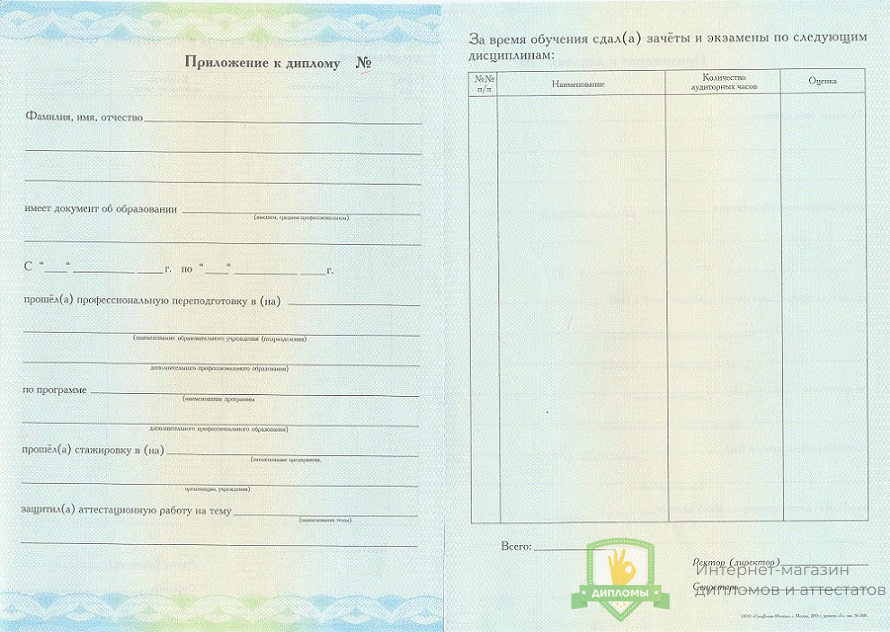 Изготовленный документ в компании «ОК-Дипломы» оформлен согласно действующим в Российской Федерации законам, соответствует нормам и особенностями, присущим тому или иному учебному заведению, имеет все элементы защиты.