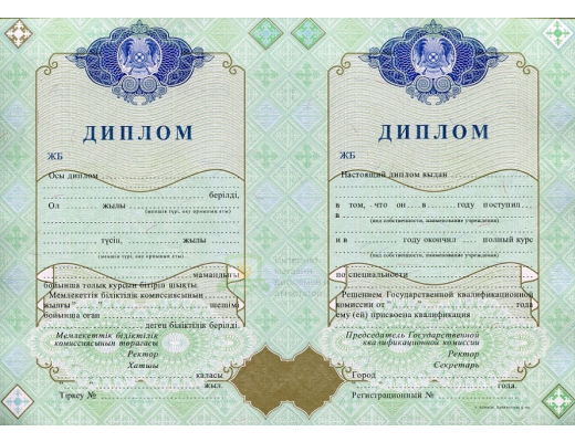 Если вы планируете купить диплом ВУЗа Казахстана 2000 - 2010 год, не сомневайтесь – получаете подлинный документ, который заполняют профессионалы, имеющие многолетний опыт работы в сфере образования. Документ на 100% соответствует всем требованиями Министерства науки Российской Федерации.