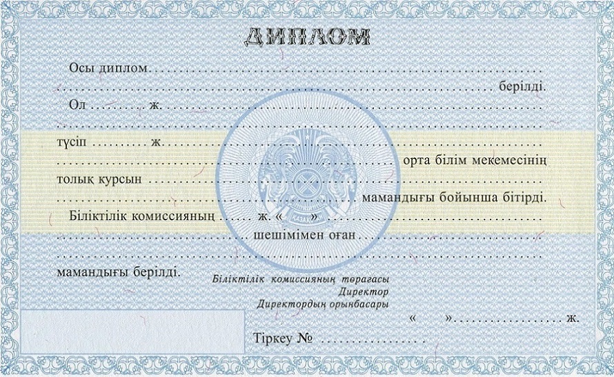 Образцы дипломов техникума / ПТУ Казахстана: